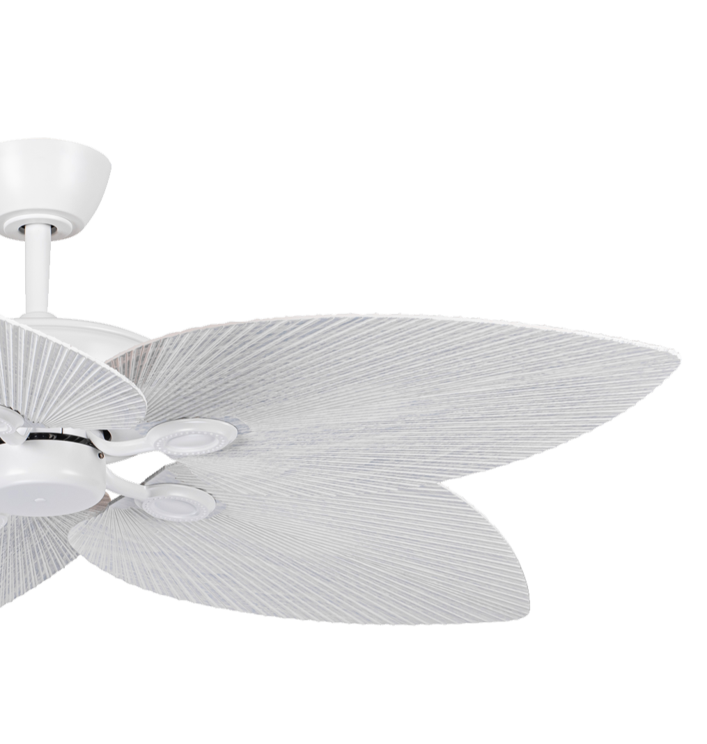 Transform your outdoor comfort with the Marley DC Ceiling fan – the perfect addition to patios, verandas and covered decks. Designed for quiet operation and optimized airflow, this 52-inch fan features elegant palm leaf shaped blades introducing a refined natural aesthetic to any space. Control it effortlessly using the included remote, your smartphone, or voice assistants like Alexa and Google Home.