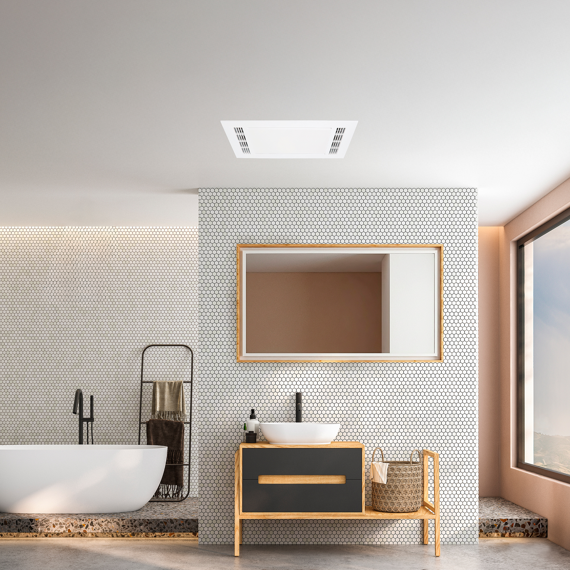 Elevate your bathroom experience with Maestro – the all-in-one heater, exhaust fan, and LED light designed to bring comfort, clarity, and clean air to your space. With a sleek, modern profile and whisper-quiet performance, Maestro delivers powerful ventilation, fast warmth, and energy-efficient lighting in one smart unit.